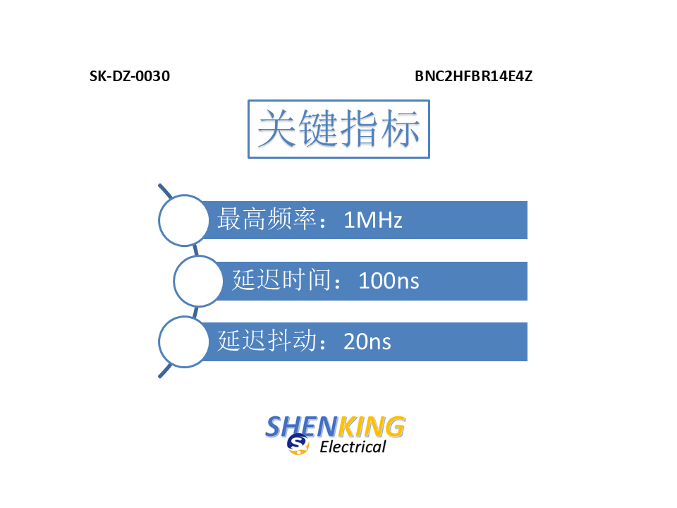 Designed to trnasfer electrical signal to the pulse opto signal. Input via BNC interface transfer to a opto interface in a very compact enclosure. Maximum Pulse Repetition Frquency (PRF) can reach 1 MHz . the minimum pulse wide can reach 100ns.